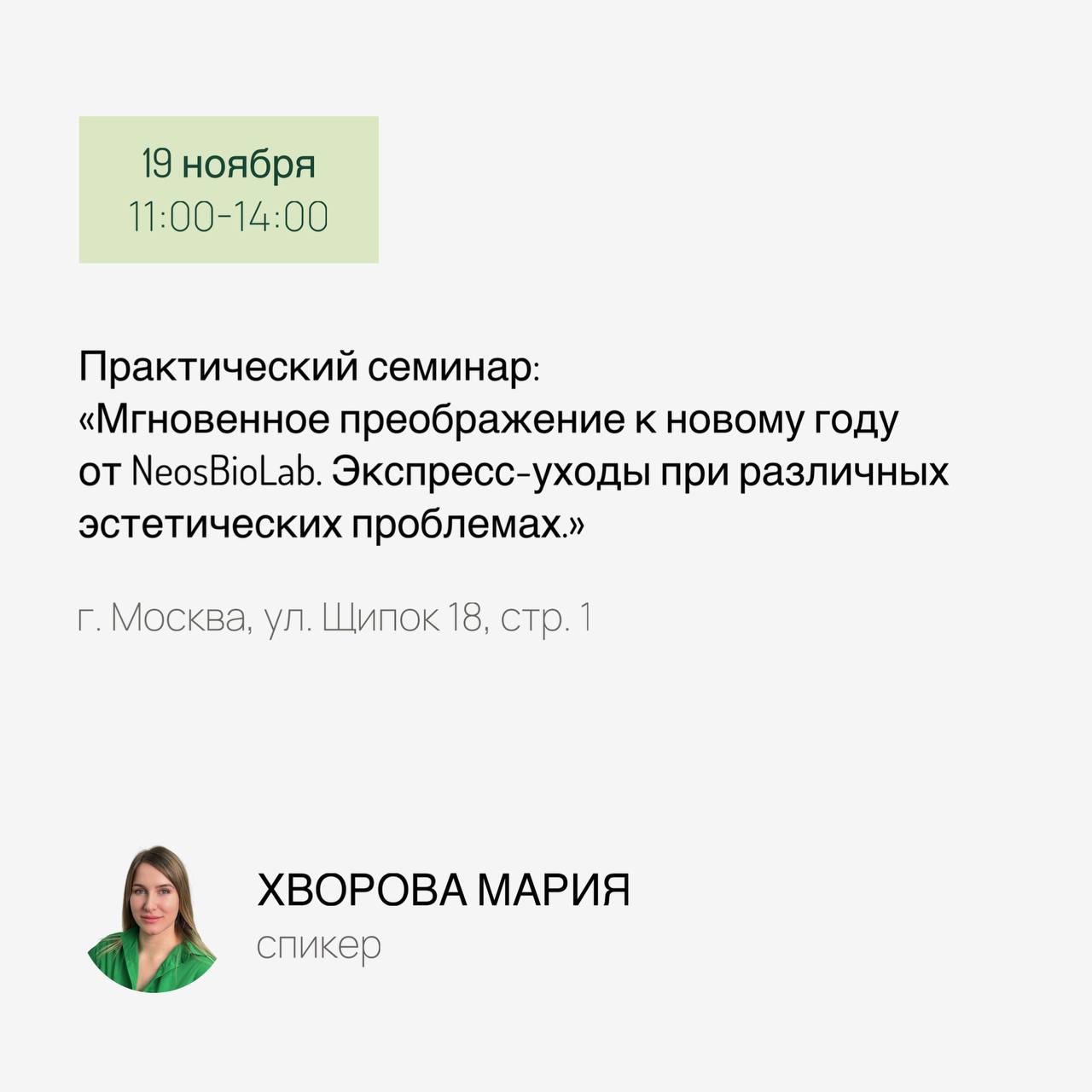 Спикер: Хворова Мария – врач-дерматовенеролог РНЦХ им. Б.В. Петровского НКЦ 3, косметолог, дерматоонколог, сертифицированный тренер NeosBioLab.